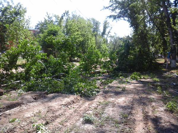 В районе КСК, между домами Каирбекова 351/1 и 351 упало дерево, да не просто упало, а упало на линию электропередач. Висит на проводах, наклонились столбы. Вся суть в том, что как раз под этим местом проходит свежепроезженная дорога между домами и тропа.