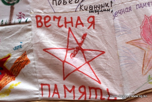 Необычную акцию объявили в СШ № 25, которая находится в районе Узкая колея Костаная. Целый месяц дети, начиная с 3-летних малышей (они занимаются в мини-центре при школе) и заканчивая 10-классниками, с помощью гуаши, фломастеров и аппликаций выражали свое отношение к войне, Дню Победы и миру в целом на лоскутках размером 20х20 см.