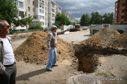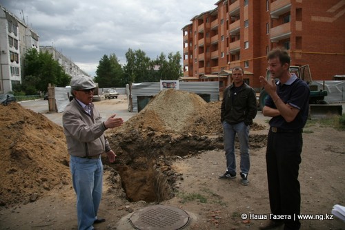 Корреспонденты «НГ» подъехали уже к 4 часам вечера. К этому времени возле вырытой ямы и одиноко стоящего без работы экскаватора отчаянно спорили Морис Ким и директор ТОО «Строй Сантехсервис-П» Игорь ПАРХОМЕНКО.