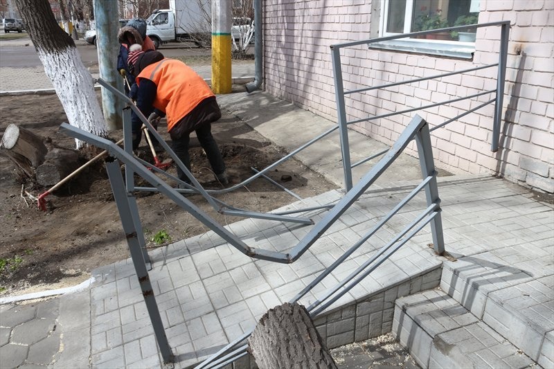 А вот и помятые деревом перила библиотеки. Снимок сделан после обеда