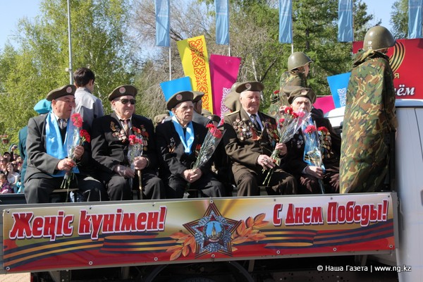 Ветеранов войны посадили на почетные места возле сцены. Из 1,2 млн казахстанцев, призванных на войну, погибло более 600 000 человек. 528 казахстанцев получили звание Героев Советского Союза, 110 000 были удостоены Ордена Славы. Из четырех казахстанцев, дважды удостоенных звания Героя Советского Союза, двое – костанайцы: Леонид Беда и Иван Павлов.
