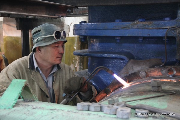 На задвижке шесть человек варят последний шов. Работа требует аккуратности и терпения. Рядом красуются новые задвижки, а по соседству с ними отжившие свой век ржавые глыбы, до 1 метра 20 см в диаметре. Наросты со всех сторон словно сталактиты, натекшие за несколько лет функционирования задвижек.