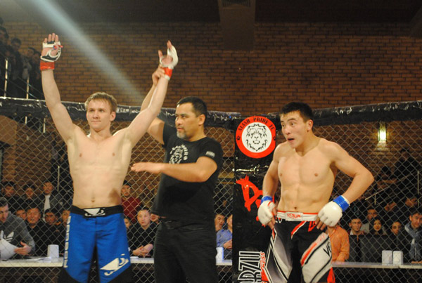Владимир Бялобжицкий закончил поединок против Элимана Жумалиева досрочно / Фото предоставил Артем БАБАДЖАНОВ