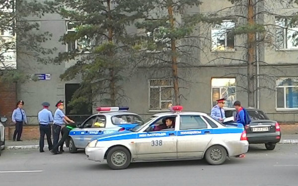 Жители города могли наблюдать, как около 18.30 на капоты полицейских машин уложили двух парней, заломив им руки.
