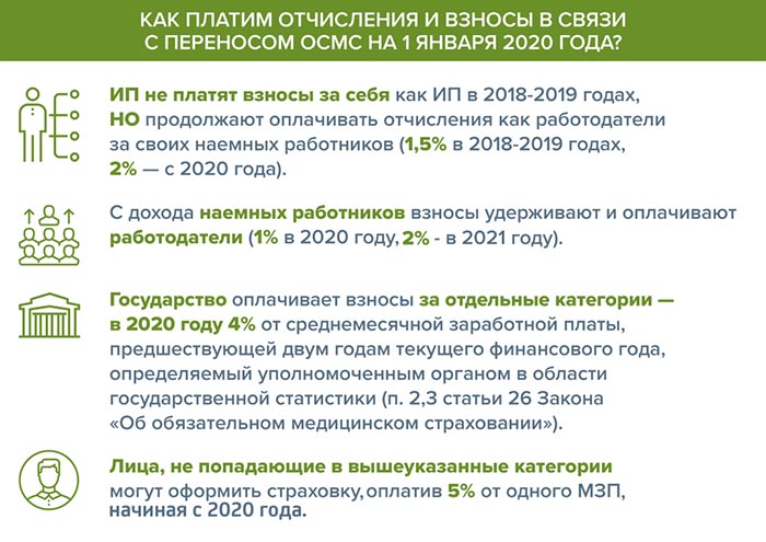 Отсрочка дана до 1 января 2020 года. За это время государство рассчитывает решить вопрос с самозанятыми, которые сейчас из ОСМС выпадают, - более четко определить это понятие, их статус для налоговых органов.