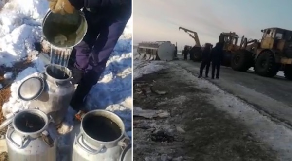 Спиртовоз перевернулся в Костанайской области. Пришли мужики с ведрами...