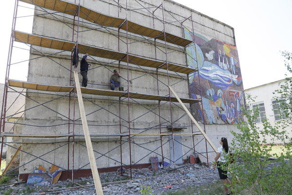 Ровно год назад, 24 мая, «НГ» опубликовала репортаж о том, как в результате монументального бума 70-80-х годов на многих зданиях и домах Костаная появились картины из хрупкой смальты и бетонные изображения, выполненные с помощью специальной техники сграффито. Тогда же мы рассказывали, какие костанайские художники участвовали в создании панно, как обсуждались идеи, откуда завозили смальту... И уже тогда писали о том, что сохранить мозаичный советский монументализм - дело весьма сложное.