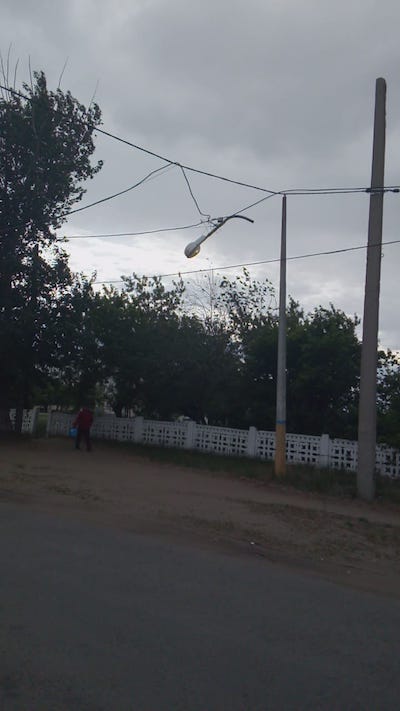 - Это ул. Пионерская, рядом со школой, - сообщала пользователь Юлия на прошлой неделе, - который день кронштейн со светильником кое-как держится на опоре. Наверное акимат местный ждёт, когда упадет на голову кому-нибудь. Тем более такая ветренная погода. С опаской обходим это место. Можно ли помочь?