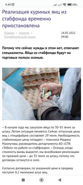Вернемся к нашим баранам - яйца из стабфонда прекратили реализовывать, так как они закупали по 35 тенге за 1 яйцо, а птицефабрики продают по 29 тенге за 1 яйцо, ничего не понял, но осенью обещают опять закупать по 35. Картофель, морковь, свекла, зимой корнеплоды по цене приравнивались к заморским фруктам, выводы сделали? Да нет же, думаете, они дадут 5 миллиардов для увеличения посевных площадей под овощи? Да хрен там, и другие корнеплоды не планировали сажать.