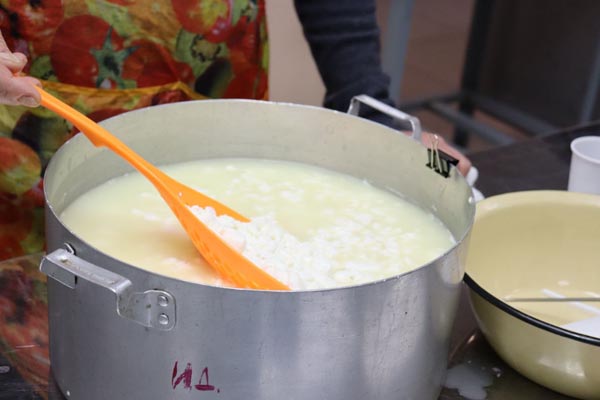 В лаборатории технологии продуктов питания в столовой индустриального колледжа 12 апреля женщины в халатах, перчатках и специальных шапочках варили брынзу в алюминиевых кастрюлях, то что получилось дегустировали с клубничным варением. Также изучали изготовление сыра каччота.
