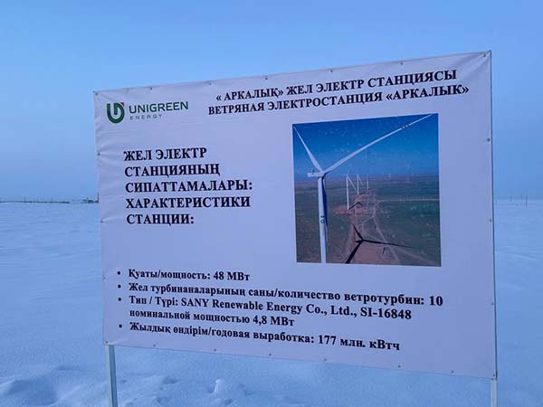 Сегодня ВЭС в Аркалыке представляет из себя 10 ветроэнергетических установок высотой по 110 м и 3 административно-бытовых здания. Акт ввода объекта был подписан 12 декабря 2023 года.