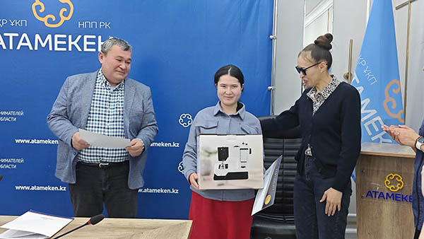 Под занавес встречи вручали подарки. И по ходу дела показали суть социального предпринимательства. Динара Куджулова - хозяйка швейного цеха, где она обучает шитью и по госпрограммам, и по собственной инициативе. В том числе женщин, у которых дети с инвалидностью. А помещение для цеха ей безвозмездно предоставил руководитель фабрики нетканых материалов SMF-System Марат САДВАКАСОВ. Он не впервые помогает социальным предпринимателям. Садвакасов и вручал выпускницам сертификаты и небольшие швейные машинки.