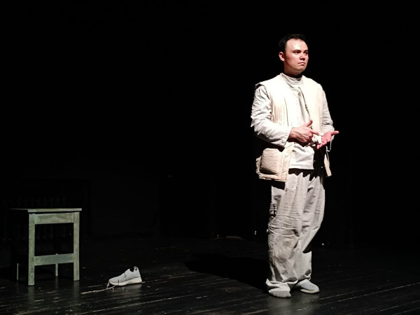 Моноспектакль в костанайском театре не пересказывает новеллу, а скорее старается дополнить ее. Само название «Аmok.PS» намекает, речь пойдет о том, что принято называть на латыни Post Scriptum, послесловие. Оригинальный текст дает больше контекста происходящему на сцене и помогает сориентироваться в действии. Главный герой в исполнении Руслана Бушинского делает множество отсылок к событиям книги, но не пересказывает их, а старается осмыслить.