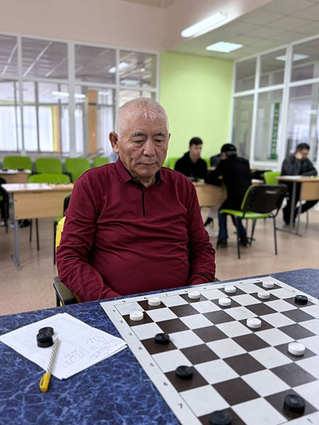 В рапиде первым среди тех, кому за 70, стал профессор КСТУ им. академика Алдамжара Юрий Бондаренко (играл только в рапиде).