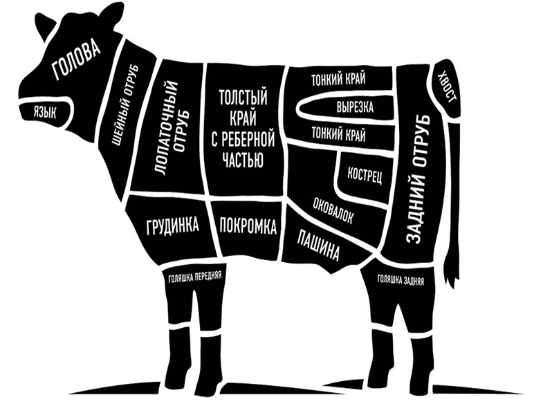 Самыми дорогими считаются вырезка и тонкий край – мясо высокой категории, на которое всегда устанавливается более высокая цена. Также дороже обходится кострец из задней части туши. А вот к самым дешёвым относят грудино-лопаточную часть.