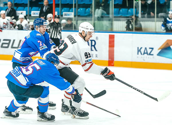 С шайбой нападающий «Горняка» Андрей Ревацкий / Фото pro.ligasy.kz