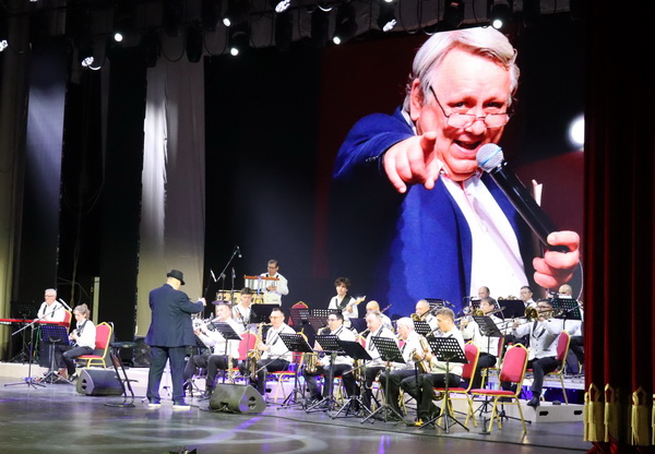 На джазовой волне, которой окатили зал после яркого вступления, зрители вспомнили всех, кто когда-то служил евсюковскому коллективу: жизнь оркестра продолжается благодаря их вкладу, а слава множится стараниями тех, кто идёт по их стопам. Слава… А вот на фото и он – живой и позитивный конферансье Вячеслав Авдеев, отдавший «Бомонду» годы. Точнее, как живой.
