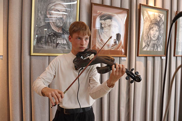 Вероятно, для каждого художника главным является выразить живое, настоящее чувство, заставить зрителя переживать те же эмоции, как бы увидеть мир его глазами… Своеобразным подтверждением этой мысли стал номер на скрипке, который во время торжественной части исполнил сын Вадима Быкова Георгий.