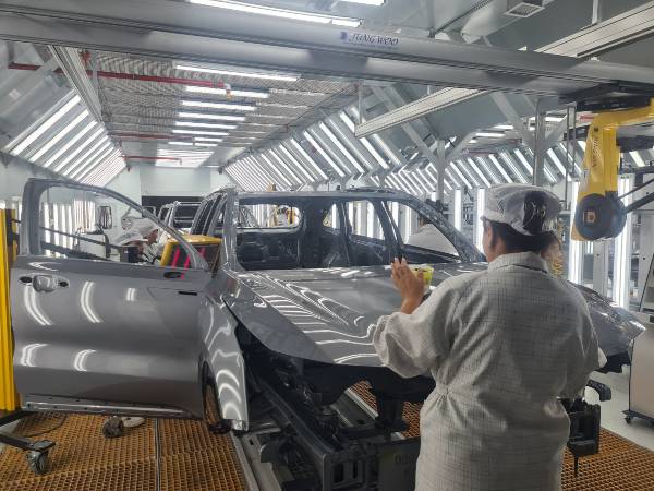 На официальном открытии сегодня, 21 октября, журналистам показали сварочный цех и цех окраски. В первом основные производственные линии автоматизированы на 96% - практически все делают роботы. Корреспондент «НГ» поговорил с теми, кто их настраивает.