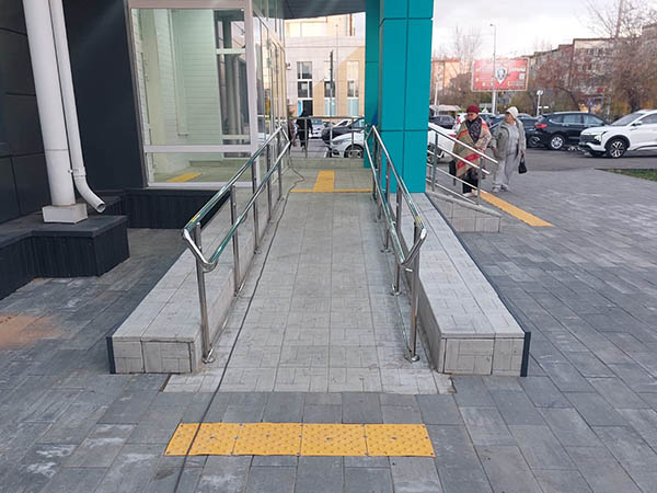 Появилась тактильная плитка перед пандусом, ранее она отсутствовала
