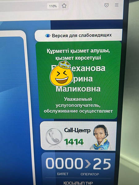 Теперь не нужно искать бейджик менеджера ЦОН. Фамилия и имя указаны на дублирующем экране. Это новшество в числе многих введено в качестве пилотного проекта только в Костанае