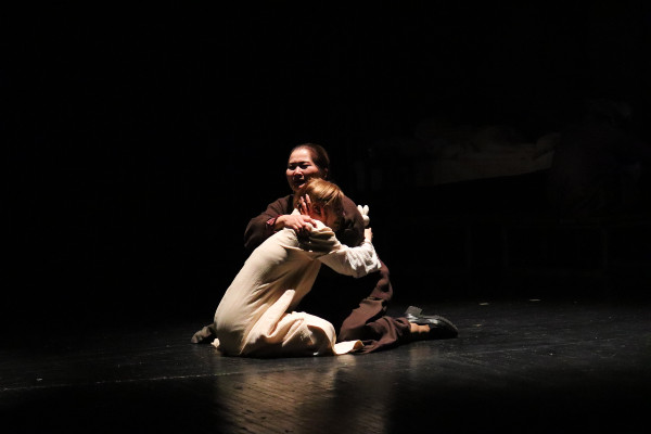 Актриса Гульмира КУЛЬБАЕВА играет жену поэта Ганижамал. На сцене она читает справку о смерти Дулатова с прочерками почти в каждой графе. А сокамерники просят начальника лагеря разрешения, чтобы они самостоятельно похоронили Мыржакыпа.