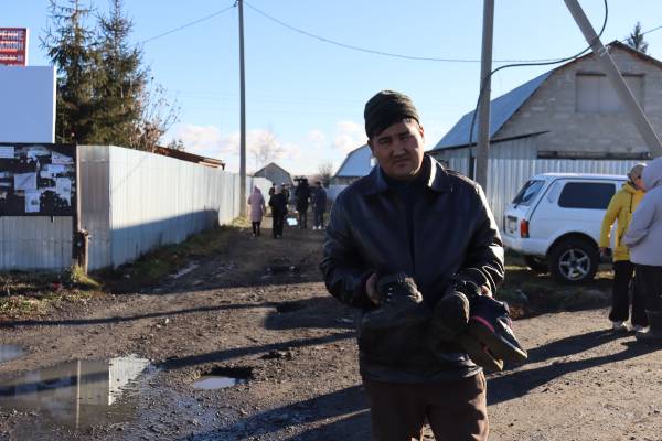 Женис КУПЕЕВ выносит из дома зимнюю обувь своих пятерых детей, чтобы отвезти ее на другой адрес - временное жилье предоставил акимат. Его дом топило канализационными водами и в августе, компенсацию за тот раз многодетный отец не получил.