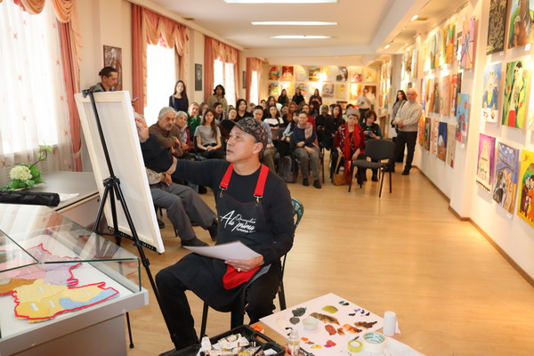 Перед подведением итогов и церемонией награждения член Союза художников РК Нурбек Жардемов провёл мастер-класс по живописи