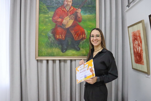Та же художница представила потрет Ибрая Алтынсарина, назвав работу «Ұлы дала қоңырауы», и завоевала с ней III место в номинации «Живопись».