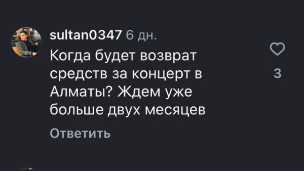 Под постами в Инстаграм-аккаунте артиста фанаты писали: "Когда вернут средства? Ждем уже больше двух месяцев!" И тоже обвиняли организаторов бас-тура в мошенничестве.