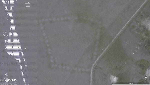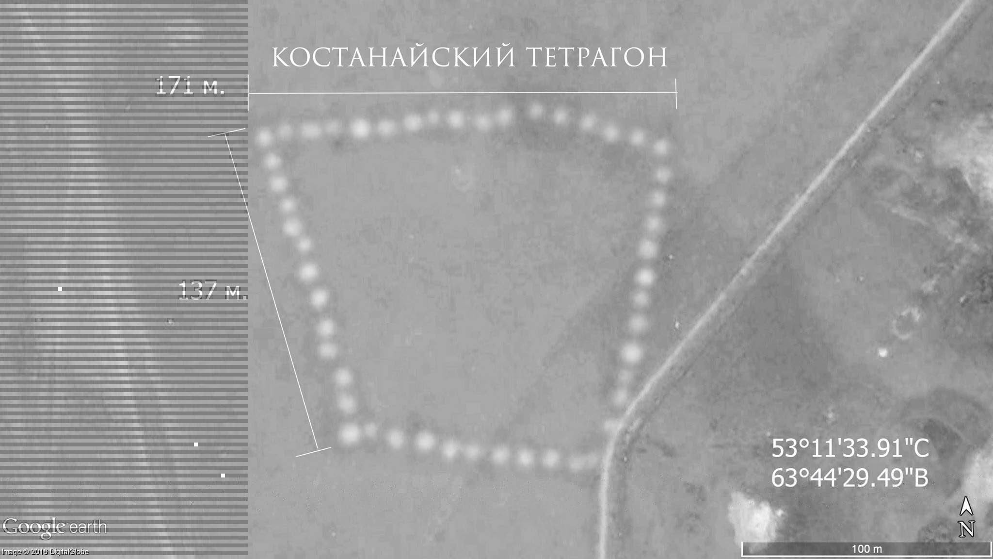 Это привело к тому, что ныне высота некогда достаточно высоких курганных холмиков тетрагона составляет всего 10-15 см, а сама фигура видна только со спутника, и то лишь весной, когда вокруг бугорков трава в определенное время вырастает чуть выше, чем на них самих. Но он есть.