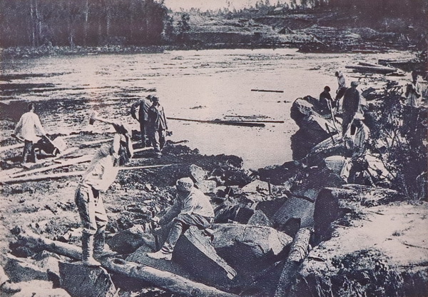 Миржакып Дулатов среди строителей Беломоро-Балтийского канала. Фото из экспозиции