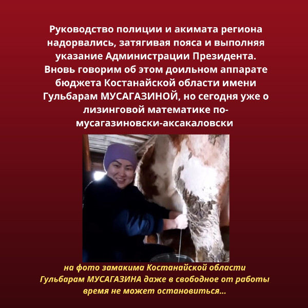 Наталья Ким в суде настаивает, что клевета есть сразу в 14 публикациях правозащитника, которые публиковались в конце августа - сентябре 2025 года. Она обращала внимание суда не только на тексты постов, но и на их музыкальное сопровождение. В частности, в некоторых публикациях Гиньятов размещал фотографии Мусагазиной, доящей корову, под песню Ильнура Юламанова «Моя доярка». Припев песни адвокат зачитала в Аулиекольском суде: "Моя доярка, лови подарки - айфон, айпад, айпод и кофеварка. Моя доярка, моя дикарка, сегодня ты сияешь очень ярко! Моя доярка, лови подарки - кувалда, сепаратор и болгарка. Моя бунтарка, позволь ремарку - сегодня нам с тобою будет жарко!"