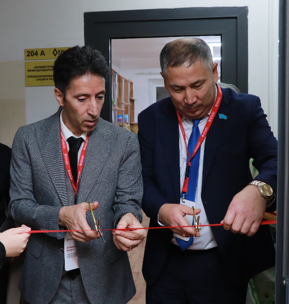 Ректор КИнЭУ Арман Исмаилов и гость из Ирана Джамшид Хемати официально открывают зеленую зону