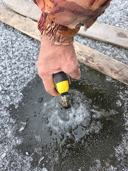 А еще надо учитывать, что в первые морозные дни толщина льда будет разная даже в пределах одного водоема. Особенно тонок он в границах течения рек. Вот и сейчас лед у нас гораздо тоньше в камыше и тростнике, в местах промоин и родников, коряг. В чем мы с Сабанеем убедились сами, выехав недавним днем на одну из тобольских стариц вблизи Костаная. Несмотря на наконец-то объявившиеся морозы, толщина льда, который мы замерили с помощью рулетки, оказалась всего-то 3 см. В метре от берега он потрескивал под ногами и пробивался с одного удара пешней. Кто рискнет рыбачить на таком льду?