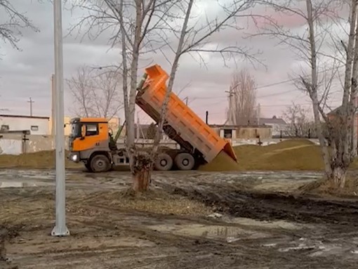Накопитель песка обустроили на 6-й Костанайской улице. По словам местных жителей, это происходит прямо посреди улицы, где неподалеку находится центр по уходу за пожилыми людьми. Законность происходящего вызвала вопросы у автора видео. которое прислали в редакцию.