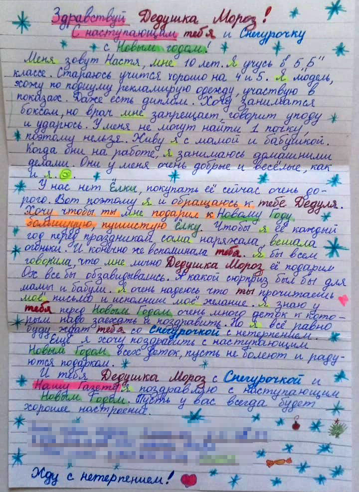 В редакцию «Нашей Газеты» в рамках традиционной акции пришли письма из 64 семей. Самые теплые и искренние послания новогоднему волшебнику мы публикуем на наших страницах. А для исполнения желаний очень нужны помощники.