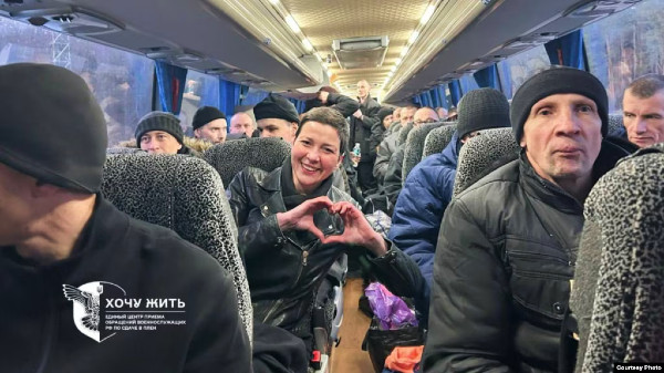 Мария Колесникова в автобусе с другими освобожденными политзаключёнными, 13 декабря 2025 года