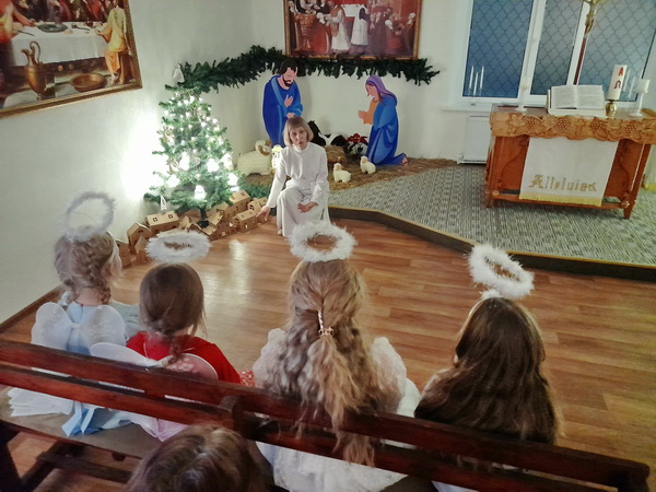 Эту шестилетнюю девочку зовут так же, как одну из главных героинь праздника – Мария. Я в Костанайском приходе Евангелическо-Лютеранской церкви Казахстана, где в Сочельник тоже собирались верующие с детьми. Маша сейчас гостит у бабушки, а бабушка у неё – настоятель прихода диакониса Светлана ХИЖНЯК.