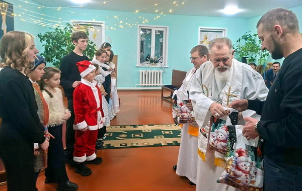 А так праздник прошёл у лютеран Кокшетау. Подарки дарит пастор Эвальд Красовский / Фото ЕЛЦРК