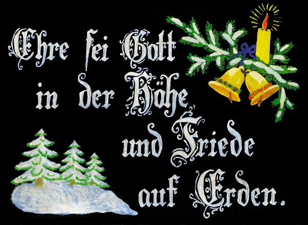 Традиционный немецкий шпрух из музейного уголка областного общества "Возрождение" с началом текста "Слава в вышних Богу" / Скан Игоря НИДЕРЕРА
