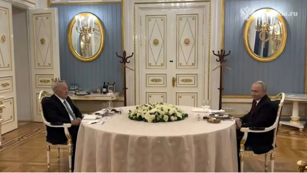 Судя по видео, встреча прошла в кремлёвской квартире Путина, где не так давно побывал Касым-Жомарт Токаев. Подробности встречи Нурсултана Назарбаева и Владимира Путина не приводятся.