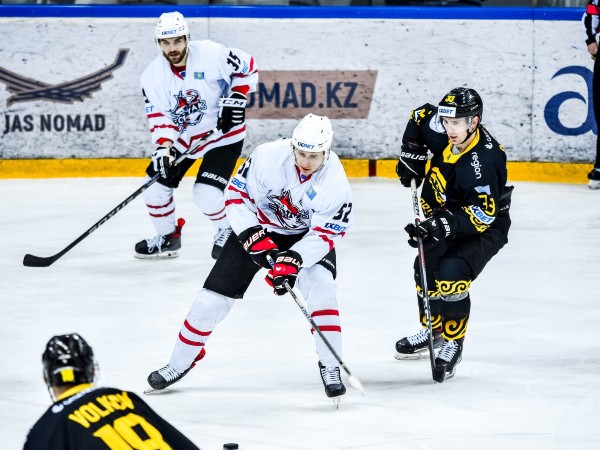 «Горняк» в гостях нанес поражение одному из лидеров чемпионата Казахстана по хоккею и поднялся в турнирной таблице