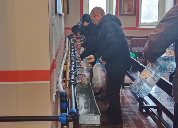 - Не так давно мы ввели в храме такую систему, когда освящённой водой наполняются специальные баки, - рассказывает заведующая канцелярией Костанайской епархии Ангелина КОВАЛЁВА, - а для удобства прихожан устанавливается небольшой временный водопровод, который позволяет людям набрать воды безо всякой очереди. И такая возможность есть всю эту неделю, в любое время и в любой день.