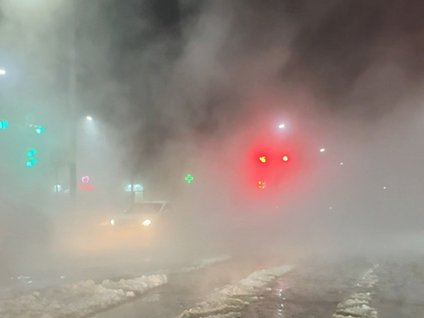 Порыв произошел поздно вечером 22 января на перекрестке улиц Рабочая и Бородина. Из-за морозного воздуха перекресток заволокло туманом, потоки воды вперемешку со снегом и льдом покрыли проезжую часть. Вода дошла вплоть до соседнего проспекта Назарбаева.