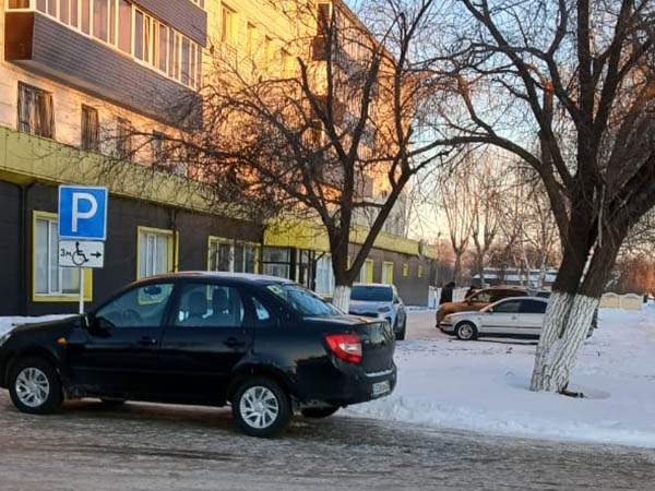 Рудный. Ул. Ленина, 12. Водители паркуются на тротуаре при наличии стоянки / Фото читателя
