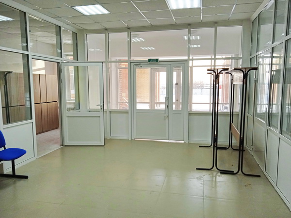 Смотришь с улицы – ну школа школой, не скажешь что прямо проблемный долгострой. По строительным меркам совсем небольшой объект, на сто мест. Свежей краской встречает спортзал, есть индивидуальные шкафчики и даже душевая комната.