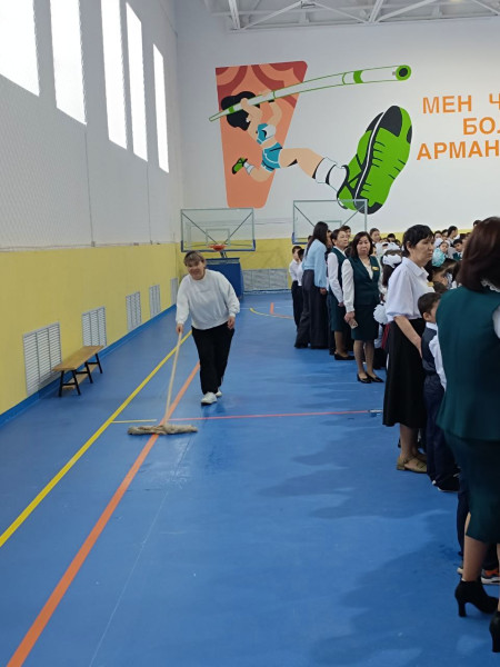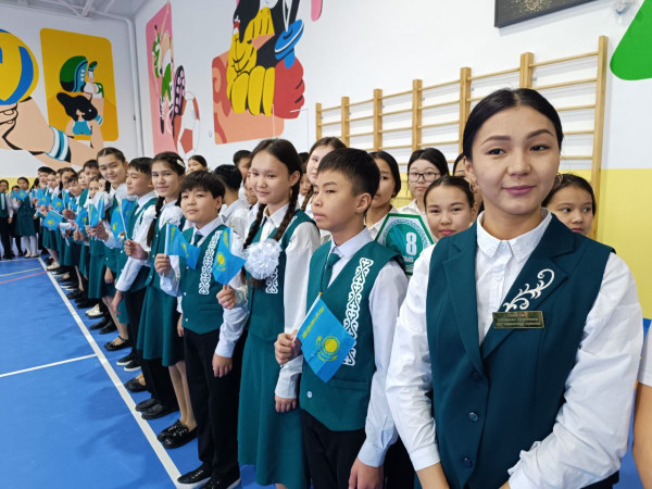 Высокие гости на такие «мелочи» не смотрят и идут в спортивный зал. Там их уже ждут выстроившиеся в линии ученики, готовые к торжественной линейке. Дети, даже самые маленькие, радуют тем, как наизусть помнят и подпевают гимн Казахстана. Сразу видно - воспитывают патриотов своей страны.