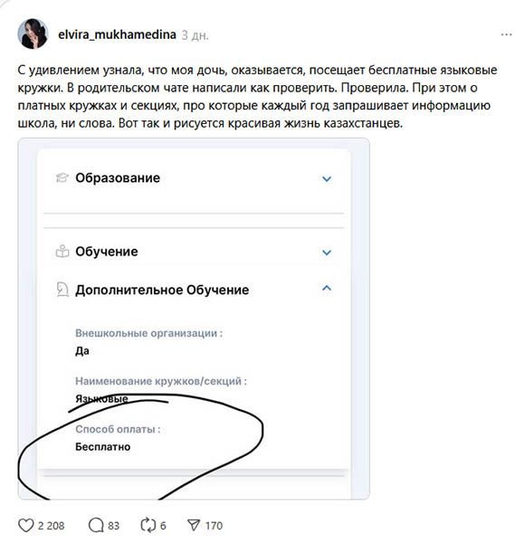В социальных сетях казахстанцы массово жалуются на то, что на портале eGov детям приписывают посещение бесплатных секций, в которые они не ходят, передает Informburo.kz. Ситуацию с "приписками" детей к бесплатным кружкам прокомментировал вице-министр просвещения Казахстана Жайык Шарабасов.
