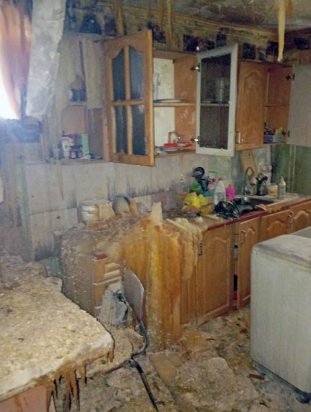 - Мы сидели дома, отдыхали, - рассказывает Ольга КУДЕНКО, которая жила в квартире № 3, - как вдруг постучали соседи: «Горим!» Ой, не могу говорить, как вспомню тот кошмар… В подъезде клубился уже такой едкий дым. Жильцы выбежали на улицу: вся правая сторона дома дымит, это 4-я и 8-я квартиры, одна над другой. Все в суматохе, никто ничего не может понять!